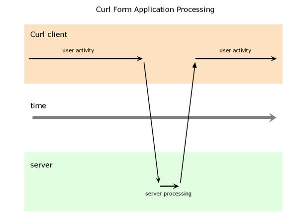 A classic server-based Web application is structured as a series of one or more forms. A user using a client machine enters information into a form and clicks a Submit or Go button. The information is sent to a server, where it is processed and a new page or form is created that is sent back to the user. This architecture makes few demands on the client machine. Unfortunately, this architecture also brings about the “World-Wide Wait” – that phenomenon where users around the world see an unresponsive screen after clicking the submit button. As a result, the usability and responsiveness of server-based Web applications represent a big step backward from the client/server or locally installed applications that they replaced. Curl applications do the presentation work and, where appropriate, run application logic on the client side. Curl’s client-side processing capabilities offload a major computational burden from server machines and greatly reduce the amount of data transmitted from servers to clients. This architecture allows Curl applications to provide “Active Forms” where validation and computations can be performed on the client without needing to continually submit information to the server. Certain selections by a user, such as indicating multiple beneficiaries on an insurance application, can even dynamically open out new panels required by the user's specific situation. One of the easiest examples is a form where the user inputs information which is then sent to a server. |